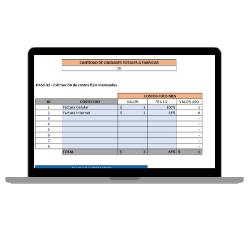 • Bono Nº1.  Plantilla editable para calcular y fijar precios a tus accesorios
